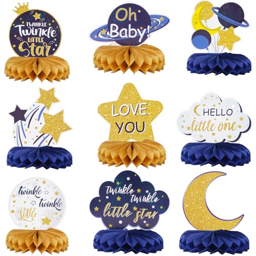 Minnhua 9 Pièces Décoration Table Baptême Naissance Anniversaire Bébé Centre de Table en Nid d’Abeille Fête Cadeau Enfant (Bleu)