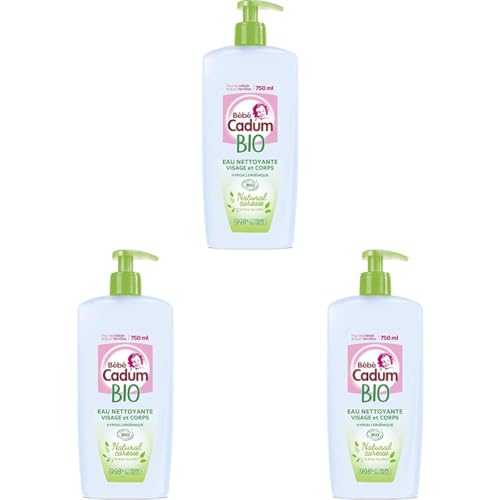 Cadum Natural Caresse Eau Nettoyante Hypoallergénique certifiée BIO pour Bébé - 750 ml (Lot de 3)