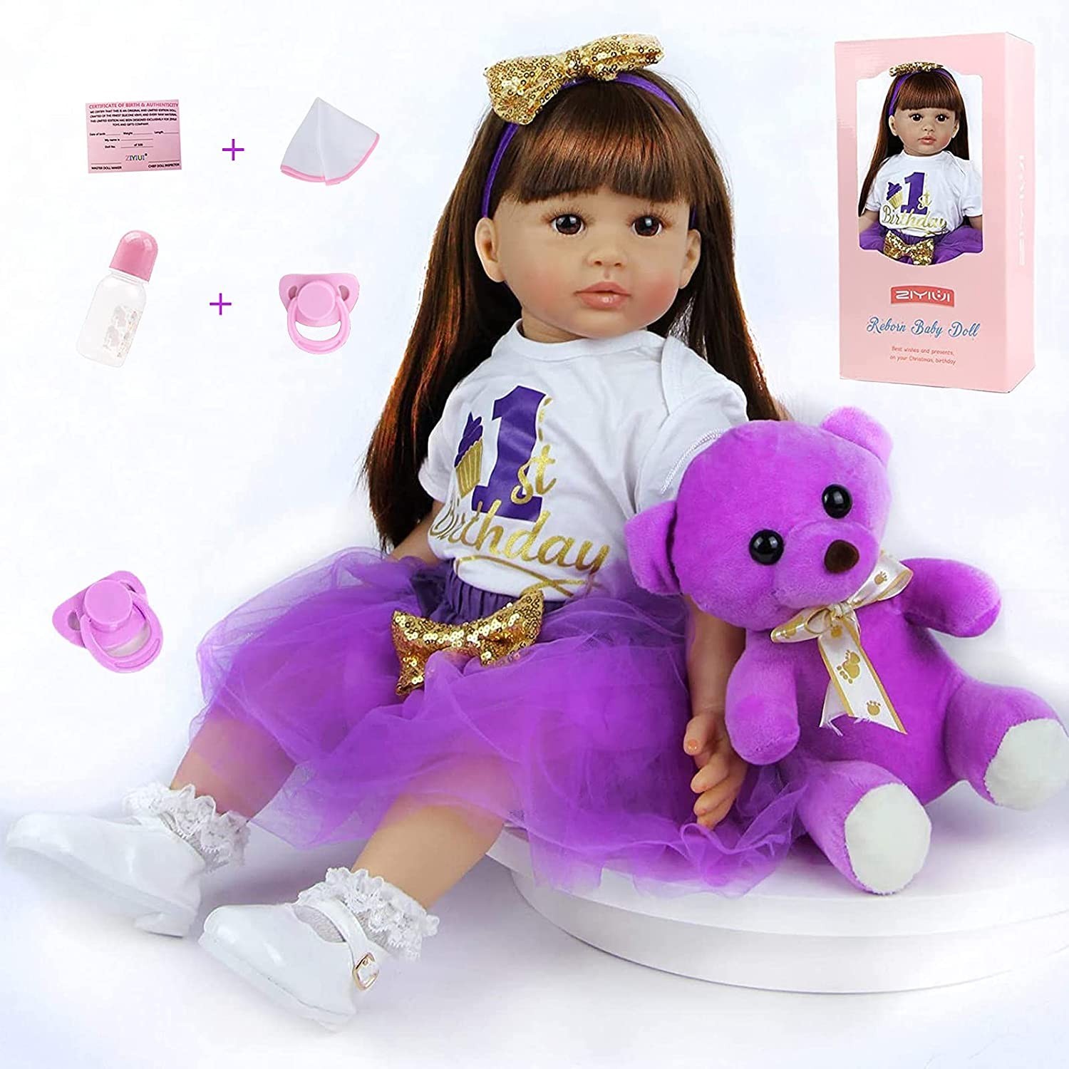 YIHANGG 60 CM Doux Silicone Reborn Bébé Poupée 24 Pouces Princesse Enfant en Bas âge Cheveux Longs Fille Belle Enfant Cadeau d'anniversaire