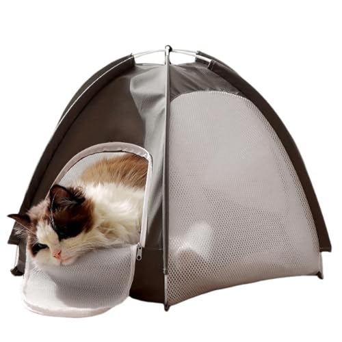 Mesh Cat Shelter - Foldable Tent House Bed, Kitten Cave Nest for Resting, Pet House Tool, Zipper Door Shelter with Instant Frame Setup, Warm Retreat Tool for Sheltering Lounging and Sleeping