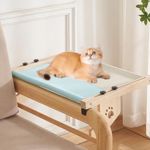 Shuoshenm Wooden Cat Hammock, Elevated Cat Swing Bed, Foldable Removable Breathable Pet Hammock with Anti Slip Mat and Solid Pine Frame for Cats Puppies Small Pets Indoor All Seasons Use