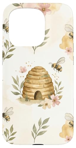 Aquarelle Bee Garden Hive Floral Illustration Design Coque pour iPhone 15 Pro