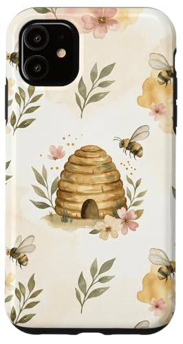 Aquarelle Bee Garden Hive Floral Illustration Design Coque pour iPhone 11