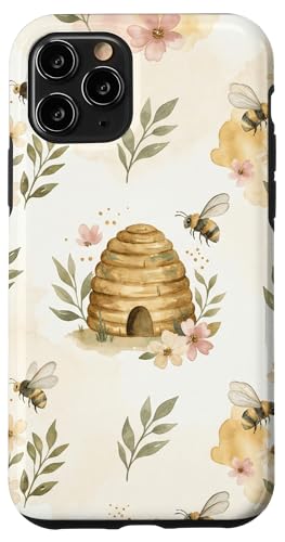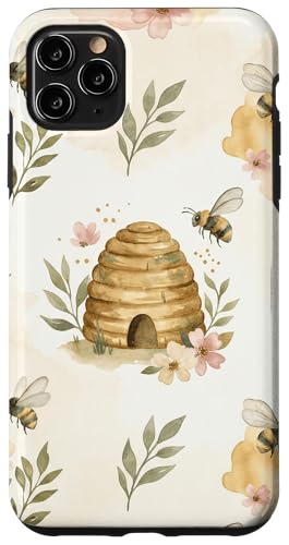 Aquarelle Bee Garden Hive Floral Illustration Design Coque pour iPhone 11 Pro