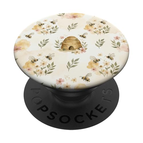 Aquarelle Bee Garden Hive Floral Illustration Design PopSockets PopGrip Adhésif