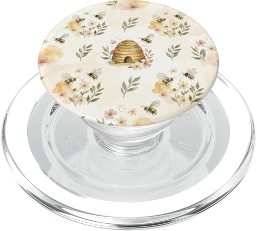 Aquarelle Bee Garden Hive Floral Illustration Design PopSockets PopGrip pour MagSafe