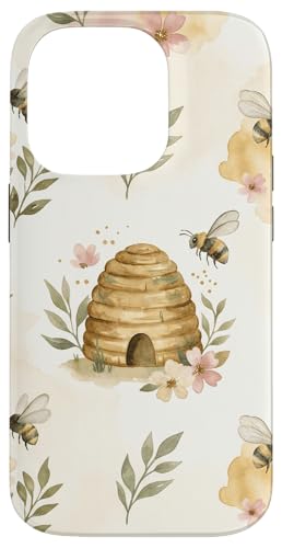 Aquarelle Bee Garden Hive Floral Illustration Design Coque pour iPhone 16 Pro