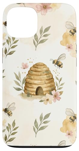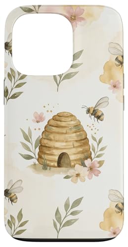 Aquarelle Bee Garden Hive Floral Illustration Design Coque pour iPhone 13 Pro