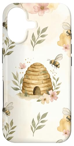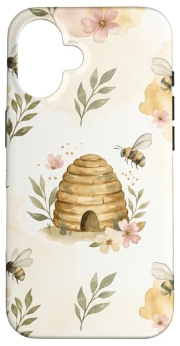 Aquarelle Bee Garden Hive Floral Illustration Design Coque pour iPhone 16 Plus