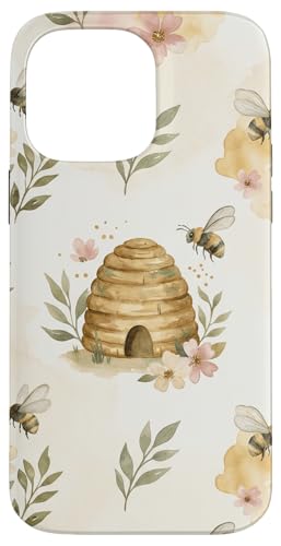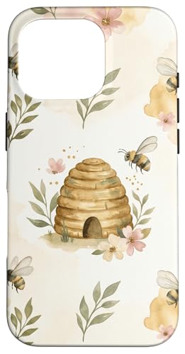 Aquarelle Bee Garden Hive Floral Illustration Design Coque pour iPhone 16 Pro Max