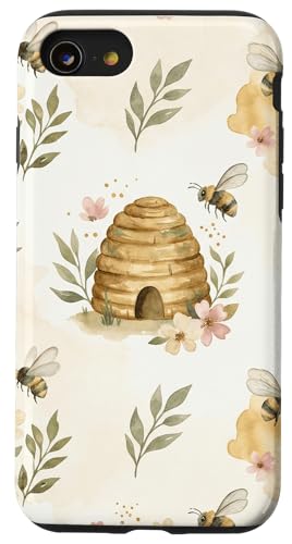 Aquarelle Bee Garden Hive Floral Illustration Design Coque pour iPhone SE (2020) / 7/8