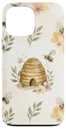 Aquarelle Bee Garden Hive Floral Illustration Design Coque pour iPhone 13 Pro Max