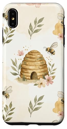 Aquarelle Bee Garden Hive Floral Illustration Design Coque pour iPhone XS Max