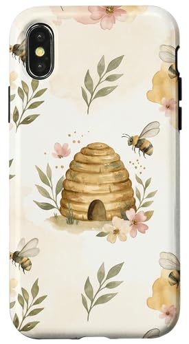 Aquarelle Bee Garden Hive Floral Illustration Design Coque pour iPhone X/XS