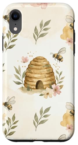 Aquarelle Bee Garden Hive Floral Illustration Design Coque pour iPhone XR
