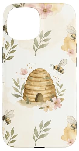 Aquarelle Bee Garden Hive Floral Illustration Design Coque pour iPhone 15