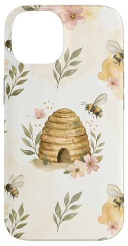 Aquarelle Bee Garden Hive Floral Illustration Design Coque pour iPhone 15 Plus