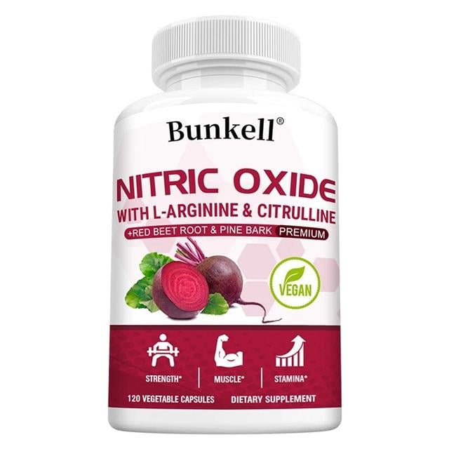 Nitric Oxide L-Arginine, L-Citrulline & Red Beet Root (120 capsules) Complément alimentaire, force, puissance, endurance, muscles, énergie