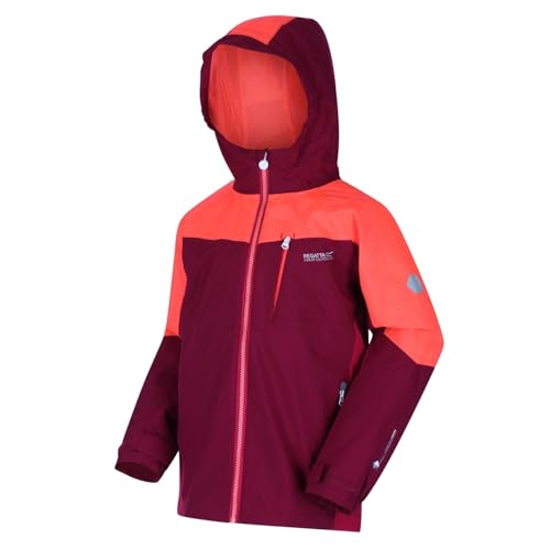 Regatta Veste protectrice Junior Highton Imperméable et Respirante avec bandes réfléchissantes et Poche à la poitrine Jackets Waterproof Shell Enfant Dark Cerise/Beetroot FR: S (Taille Fabricant: 3-4)