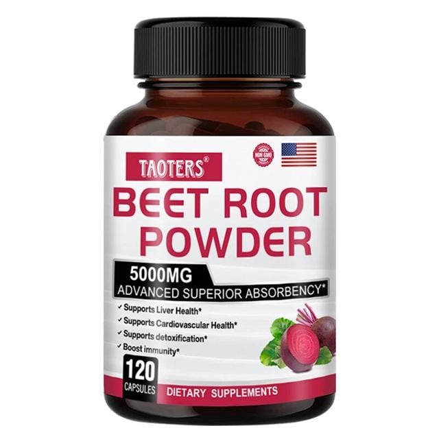 Beet Root Powder 5000mg (120 capsules) Complément alimentaire, cur, circulation, pression sanguine, énergie, foie, nettoyage, désintoxication