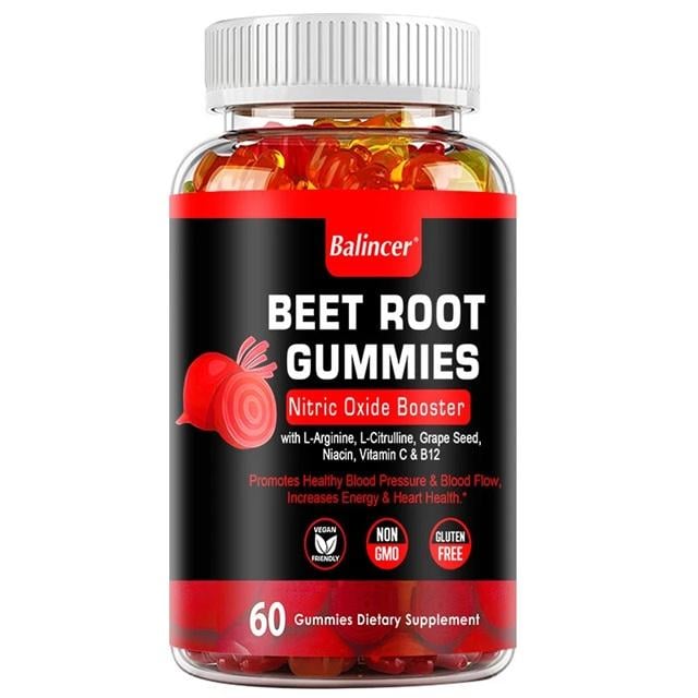 Beet Root Gummies Nitric Oxide Boost (60 gommes) Complément alimentaire, cur, circulation, pression sanguine, santé cardiaque, digestion