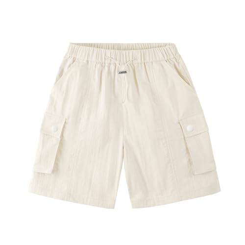 Rolanko Enfant Shorts Fille Sport Actif Èté Cargo Bermudas Shorts pour Ado Course Gym Pantalon Court Parachute, Beige, Taille: 11-12 Ans/160