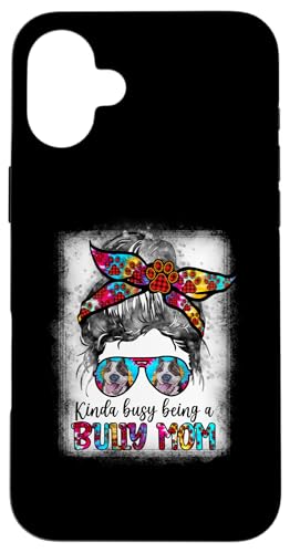 Kinda Busy Being A American Bully Mom Messy Hair Fête des Mères Coque pour iPhone 16 Plus