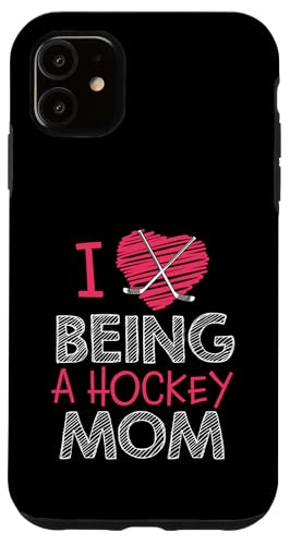 Love Being A Hockey Mom, Jolis bâtonnets en Forme de cœur, Design Sportif Coque pour iPhone 11