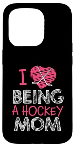 Love Being A Hockey Mom, Jolis bâtonnets en Forme de cœur, Design Sportif Coque pour iPhone 15 Pro