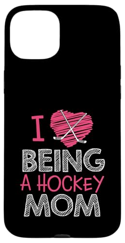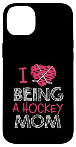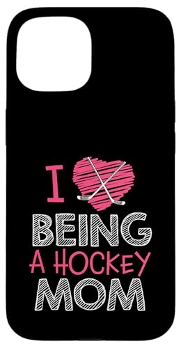 Love Being A Hockey Mom, Jolis bâtonnets en Forme de cœur, Design Sportif Coque pour iPhone 15 Plus
