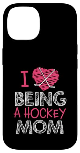 Love Being A Hockey Mom, Jolis bâtonnets en Forme de cœur, Design Sportif Coque pour iPhone 14 Plus