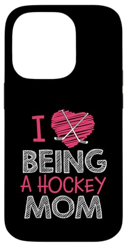 Love Being A Hockey Mom, Jolis bâtonnets en Forme de cœur, Design Sportif Coque pour iPhone 14 Pro