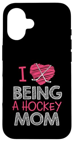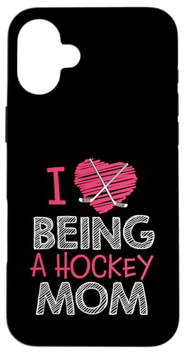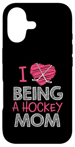 Love Being A Hockey Mom, Jolis bâtonnets en Forme de cœur, Design Sportif Coque pour iPhone 16 Plus