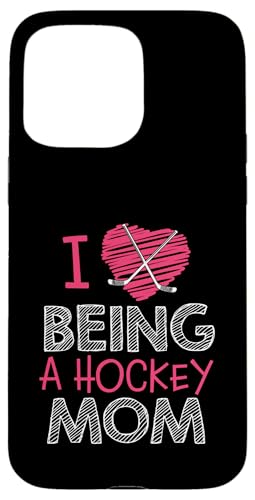 Love Being A Hockey Mom, Jolis bâtonnets en Forme de cœur, Design Sportif Coque pour iPhone 15 Pro Max