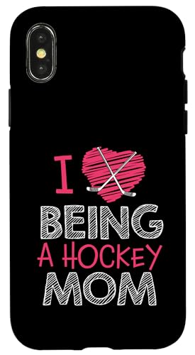 Love Being A Hockey Mom, Jolis bâtonnets en Forme de cœur, Design Sportif Coque pour iPhone X/XS