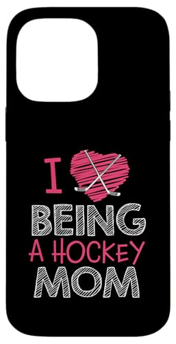 Love Being A Hockey Mom, Jolis bâtonnets en Forme de cœur, Design Sportif Coque pour iPhone 14 Pro Max