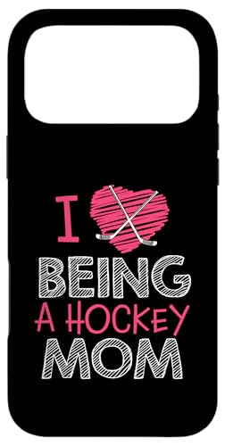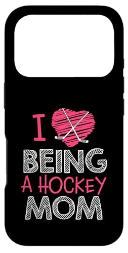 Love Being A Hockey Mom, Jolis bâtonnets en Forme de cœur, Design Sportif Coque pour iPhone 17 Pro