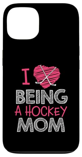 Love Being A Hockey Mom, Jolis bâtonnets en Forme de cœur, Design Sportif Coque pour iPhone 15
