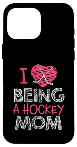 Love Being A Hockey Mom, Jolis bâtonnets en Forme de cœur, Design Sportif Coque pour iPhone 16 Pro Max