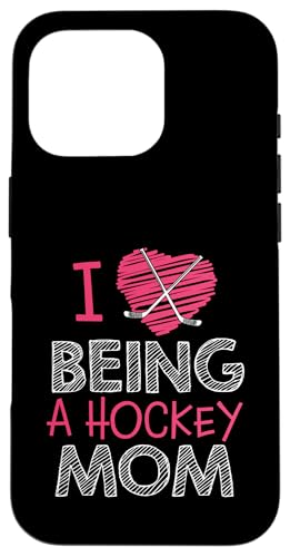 Love Being A Hockey Mom, Jolis bâtonnets en Forme de cœur, Design Sportif Coque pour iPhone 16 Pro