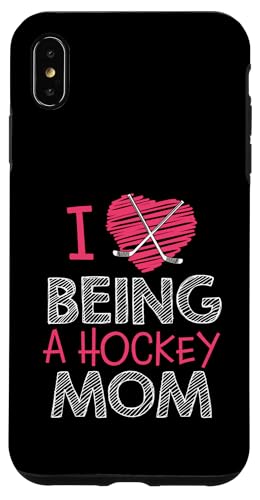 Love Being A Hockey Mom, Jolis bâtonnets en Forme de cœur, Design Sportif Coque pour iPhone XS Max