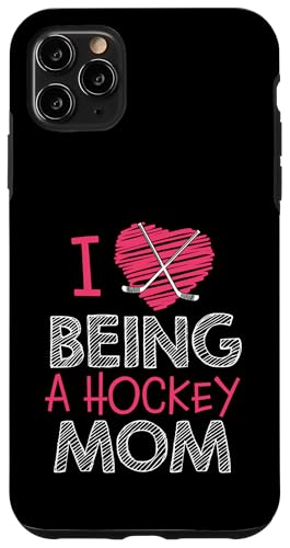 Love Being A Hockey Mom, Jolis bâtonnets en Forme de cœur, Design Sportif Coque pour iPhone 11 Pro Max