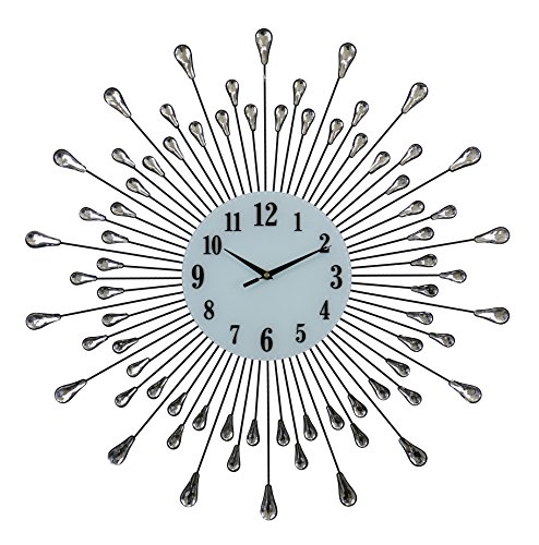 Horloge murale élégante Bejeweled argent liquide gouttes ronde avec accents en verre 27"