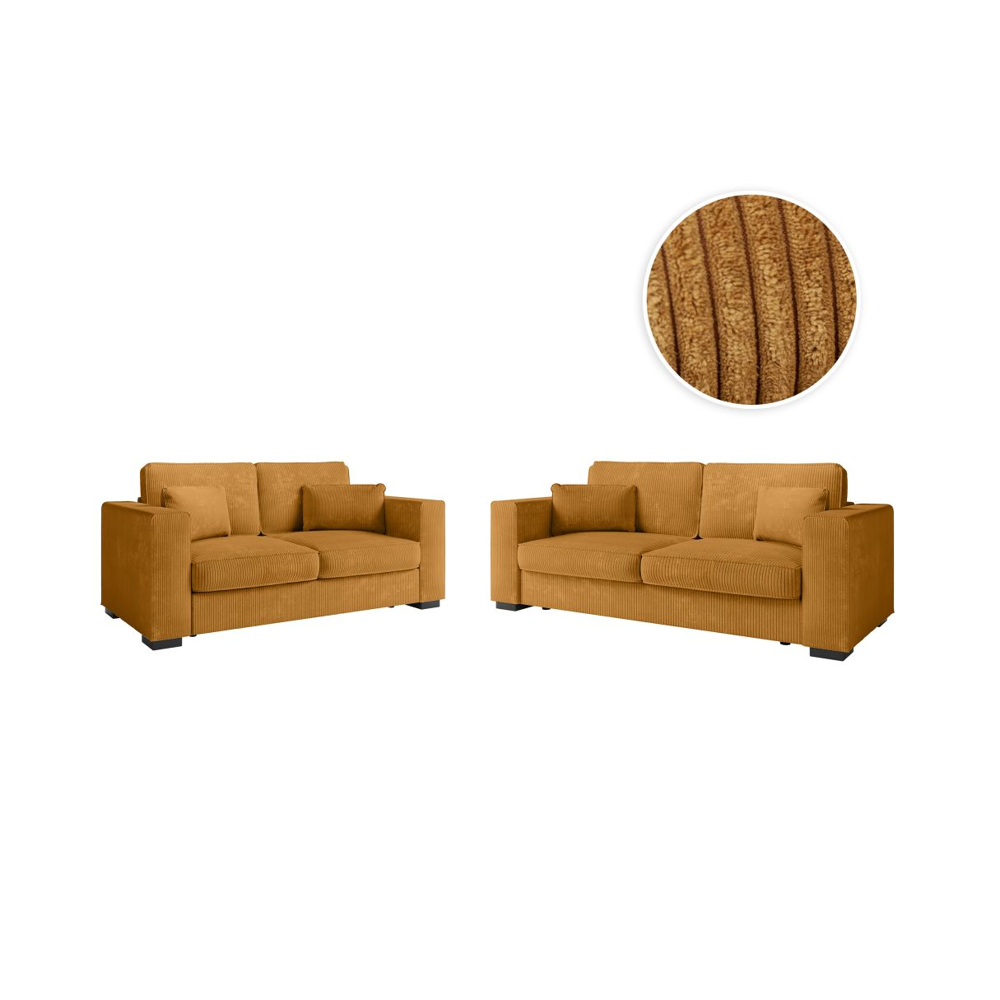 Canapé dangle droit BELAMI XXL 6 places en velours côtelé - Beige - L303 x P228 x H86cm - LOUNGITUDE