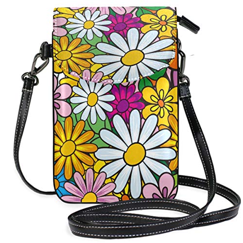 Oudrspo Dessin animé Belle Fleur bandoulière téléphone Sac à Main Petit Mini Sac à bandoulière Pochette pour téléphone Portable Portefeuille en Cuir pour Femmes Filles