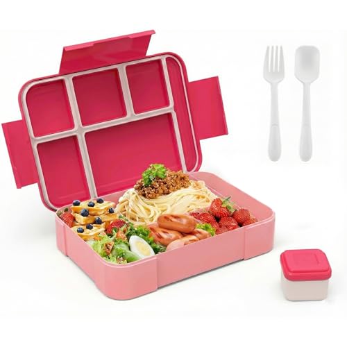 Diboniur Lunch Box, Bento Lunch Box Enfant Adulte Boîte 1400ml avec 3 Compartiments, Conception Sans Fuite Lunchbox avec Couverts, pour Micro-onde Lave-vaisselle, École Pique-Nique Travail (Rose)