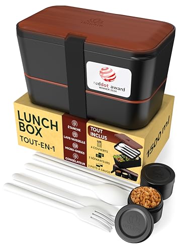 Umami Bento Lunch Box, Couverts & 2 Pots à Sauce Inclus, Boîte à Lunch Étanche, Lunchbox Adulte, Micro-Ondable Boîte Repas Compartimentée
