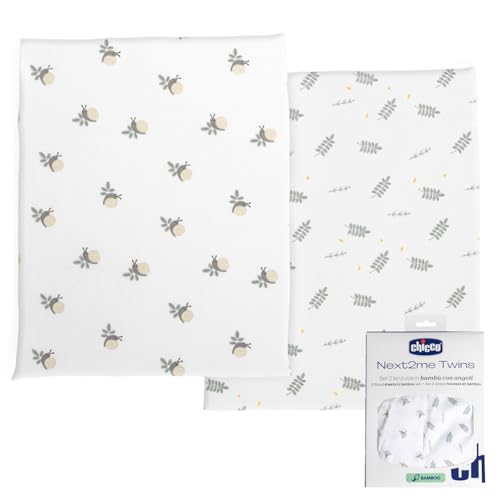 Chicco Ensemble de Draps en Fibre de Bambou, 1 Drap Supérieur et 1 draps-housses, Compatible avec les Matelas 58x110 cm, Compatible avec le berceau Next2Me Forever,