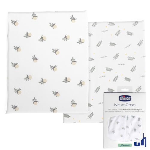 Chicco Ensemble de Draps en Fibre de Bambou, 1 Drap Supérieur et 1 draps-housses, Compatible avec les Matelas 58x110 cm, Compatible avec le berceau Next2Me Forever,