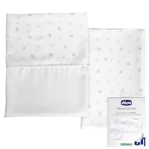 Chicco Ensemble de draps en fibre de bambou, 1 Drap Supérieur et 1 draps-housses, 1 taie d’oreiller, compatible avec matelas 58x110 cm, compatible avec berceau Next2Me Forever, fantaisie feuillets